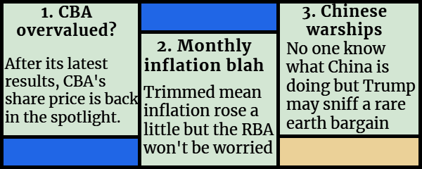 CBA’s valuation is sky high! But it seems the only thing that could pop it would be Chinese warships sailing down Sydney Harbour.