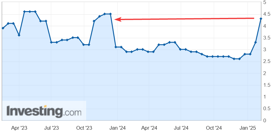 While only a small increase, the surprise on the upside was another slap in the face for US markets who are dealing with just a little bit of economic uncertainty as Elon Musk cleans the Washington swamp and President Trump raises tariffs on allies and the US’s largest trading partner: China.